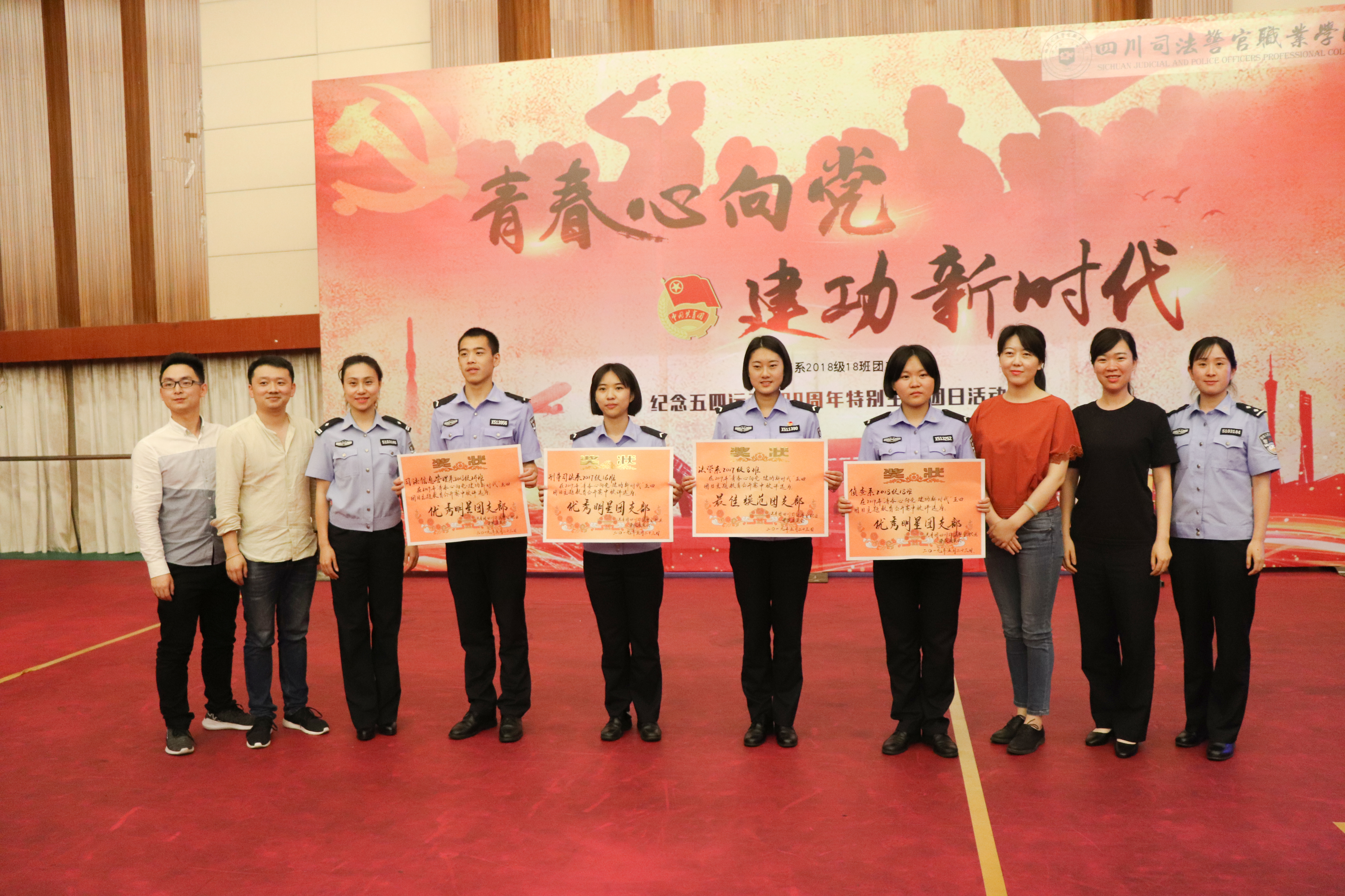 2019年5月23日下午,我院在南校文化艺术中心举行了以纪念五四运动100周年特别主题班会公开赛。团委副书记刘佳、侦查系团总支书记胡江涛、刑司系团总支书记徐玲、法学系团总支书记周文懿、司法信息管理系团总支书记宋志萍、团委老师彭步进作为此次比赛评委出席。
