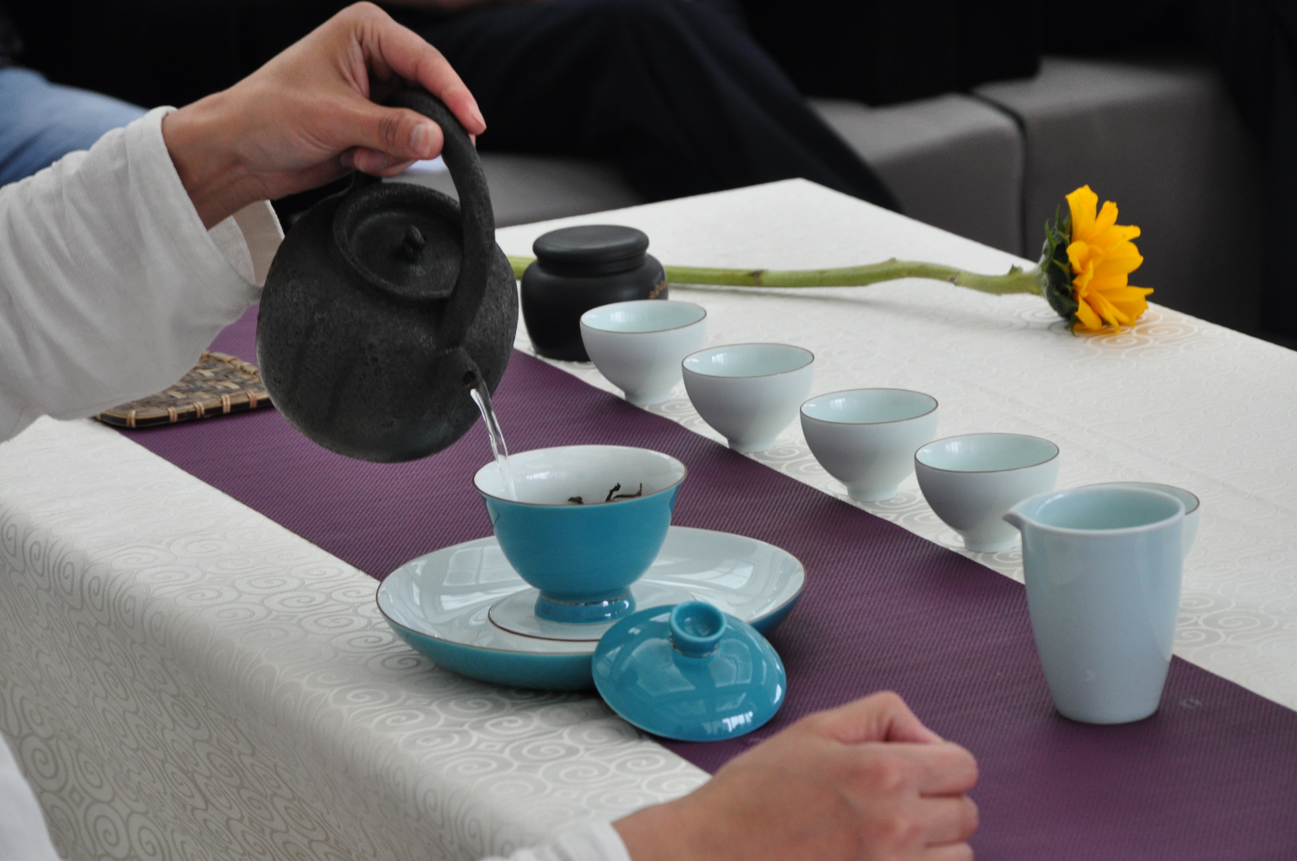活动上,张云山师兄为我们演示了煮茶品茶的过程,从“恭敬行礼、平衡备茶、安顿温器、和谐醒茶和谦逊温杯”等十个动作中,总结出茶艺礼仪和在生活中要懂得回味和包容的道理。他用茶艺表达了对母校的感恩与尊敬,用自己的经验告诉我们努力和自身修养的重要性。