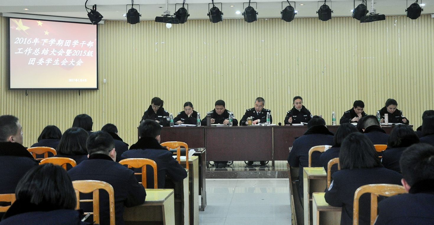 2017年1月4日下午,院团委召开2016年下学期团学干部工作总结大会,团委书记杨虎、团委副书记刘佳、团委办公室龙勇壇、法学系团总支周文懿、刑司系团总支徐玲、侦查系团总支胡江涛、司信系团总支杨懿鹏老师以及院、系主要团学干部参加。
