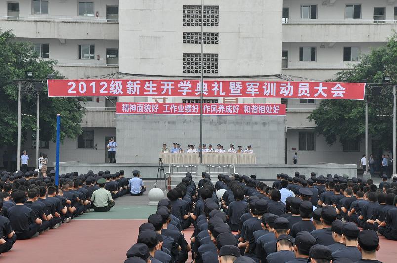 最后,2012级新生开学典礼暨军训动员大会在军乐队演奏的雄壮的《人民警察之歌》中结束, 2012级新生正式投入到军训当中。